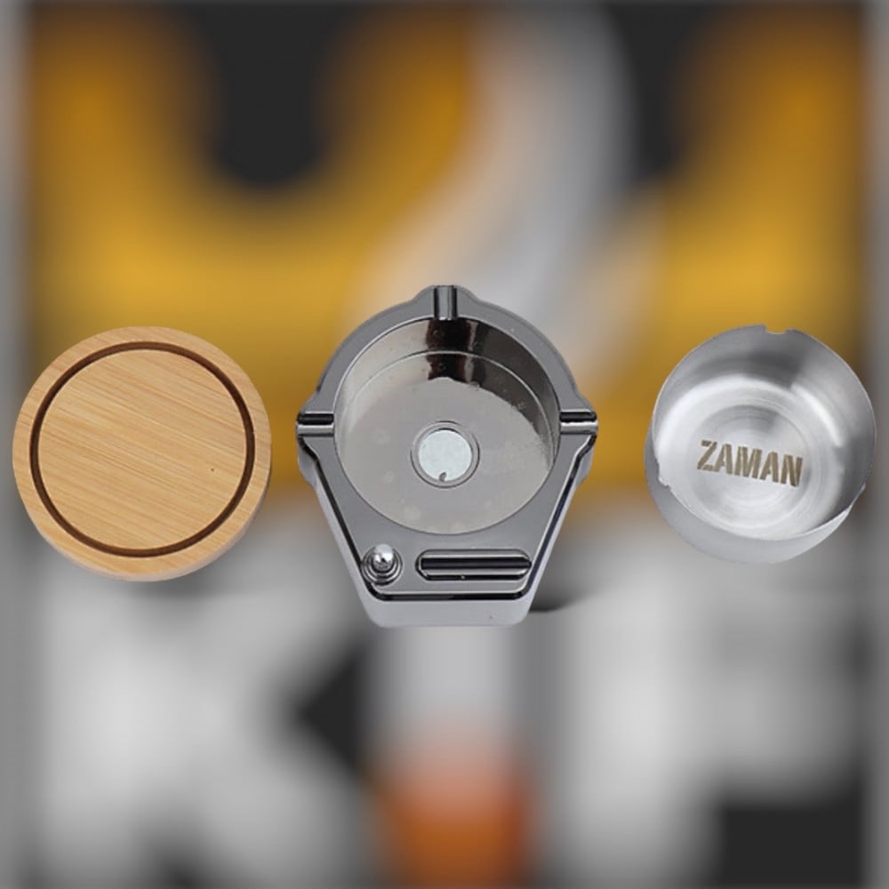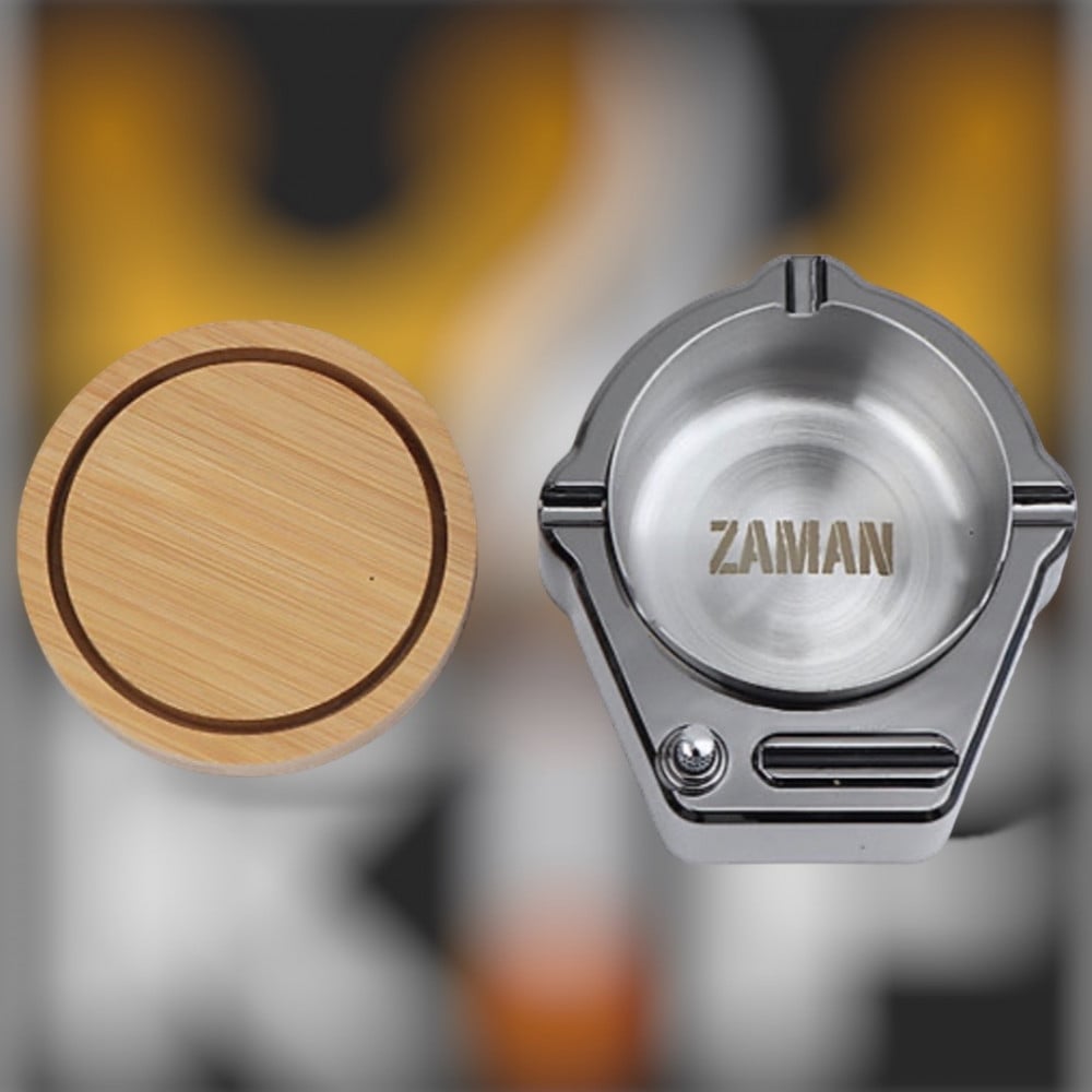 منفضة سجائر ماركة زمان مع غطاء خشب